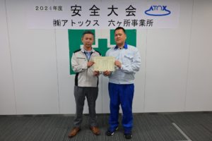 先日、客先にて行われた安全大会において、弊社従業員が表彰していただきました。日頃の努力の賜物と、皆様のご指導のお陰と感謝申し上げます。ありがとうございました。